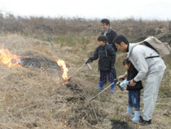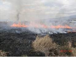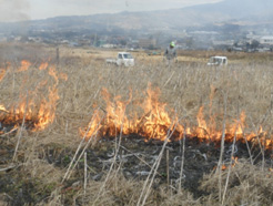 | 葦原の向こうに見える新東名NEOPASA駿河湾沼津(上) | 昔ながらの野焼きの光景 |