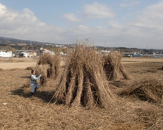 束ねた葦は、地域の風物詩になるよう、集めて立てておくことにしました