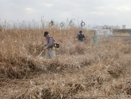 新東名沿線の「浮島地区」にて葦の草刈作業のボランティア活動をおこないました