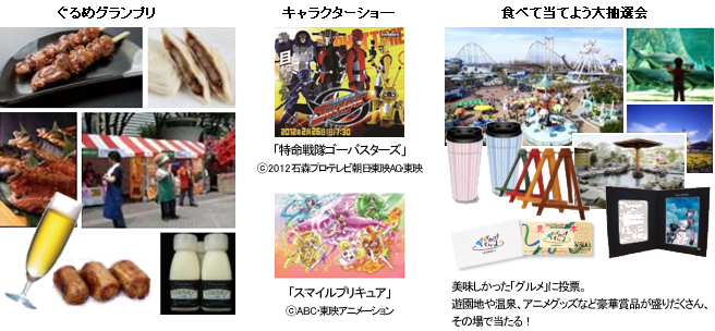 今回のグランプリには、SA・PAでお客さまに好評なスナックやスイーツのほか、地域の食材や調理方法などを工夫し、新たに商品開発したSA・PAでしか食べることができないオリジナル商品が大集合します。食べて美味しかった「グルメ」に投票して、その場で遊園地や温泉のペアチケット、なかなか手に入らないアニメグッズなど魅力ある商品が当たる「食べて当てよう大抽選会」もおこないます。