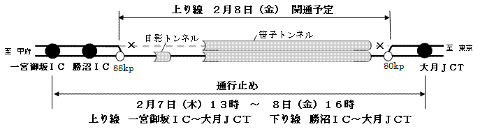 中央自動車道笹子トンネル(上り線)の開通見通しについて