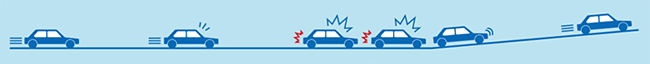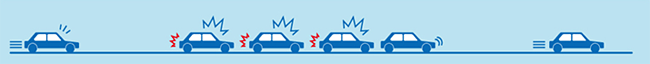 ・車間距離をつめ過ぎると、前の車の速度低下で後続車が次々とブレーキを踏んで渋滞が発生します。余計なブレーキを踏まないように十分な車間距離をとって走行しましょう。