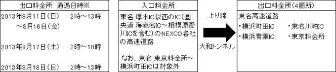 - ■渋滞緩和を目的として東名上り線の一部区間では、「東名 お盆 渋滞減らし隊キャンペーン」を実施します。
