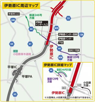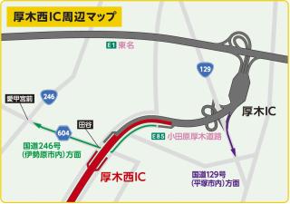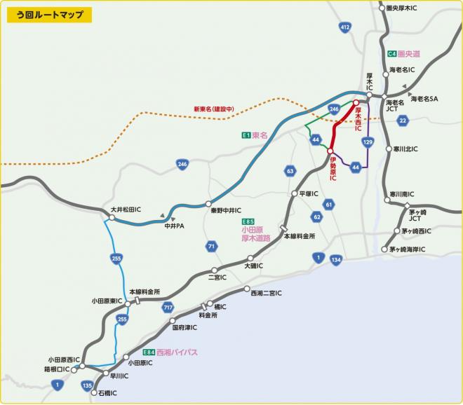 当該区間をご利用される場合、主なう回路として国道129号および246号をご利用できますが、周辺道路の渋滞が予想されますので、東名高速道路などを利用した広域う回にご協力をお願いいたします。